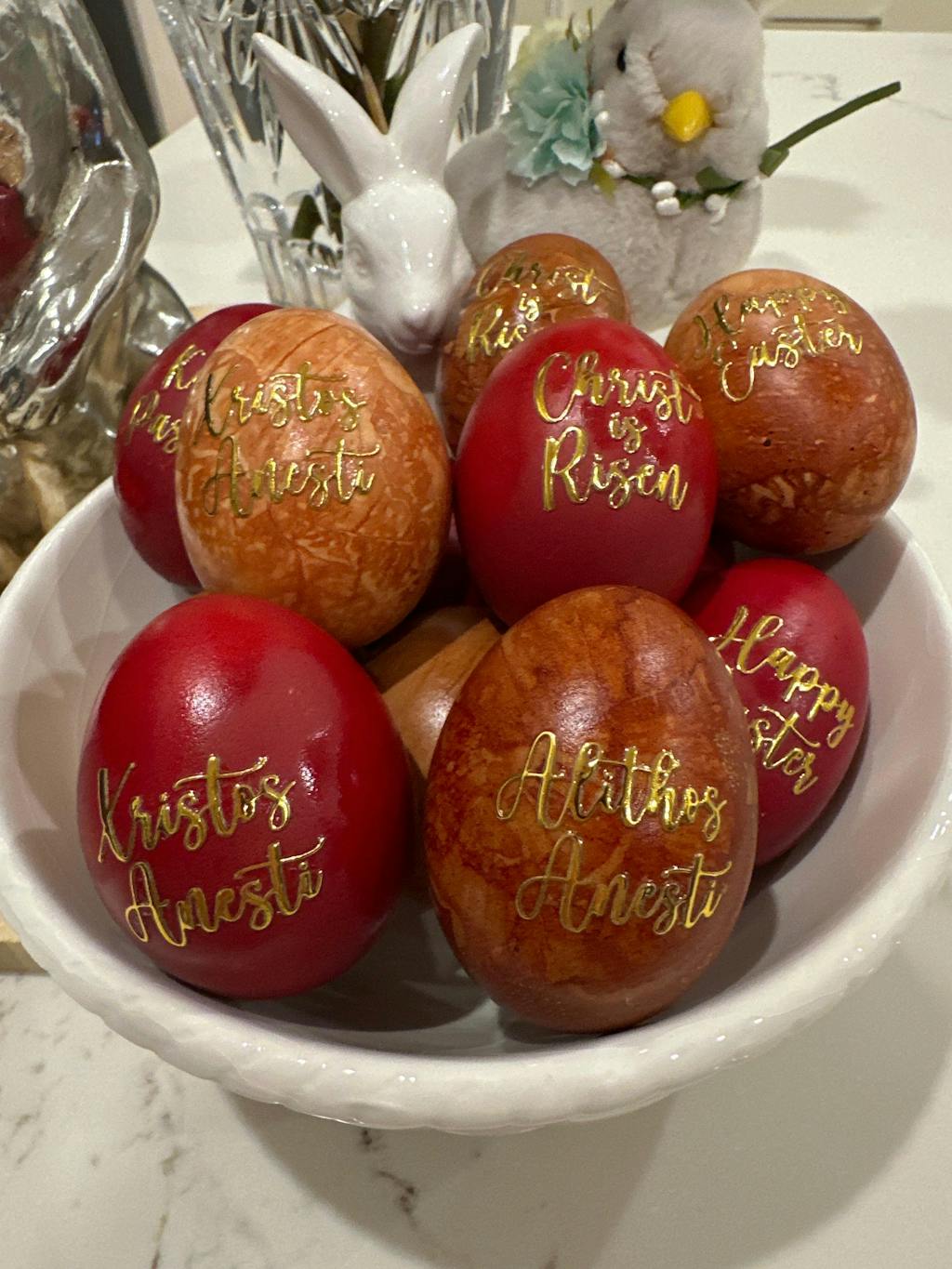 Everyone commented on my red orthodox eggs this Easter with the gorgeous stickers 🥰🥰 my tip: do not oil your red eggs before the stickers are placed !!